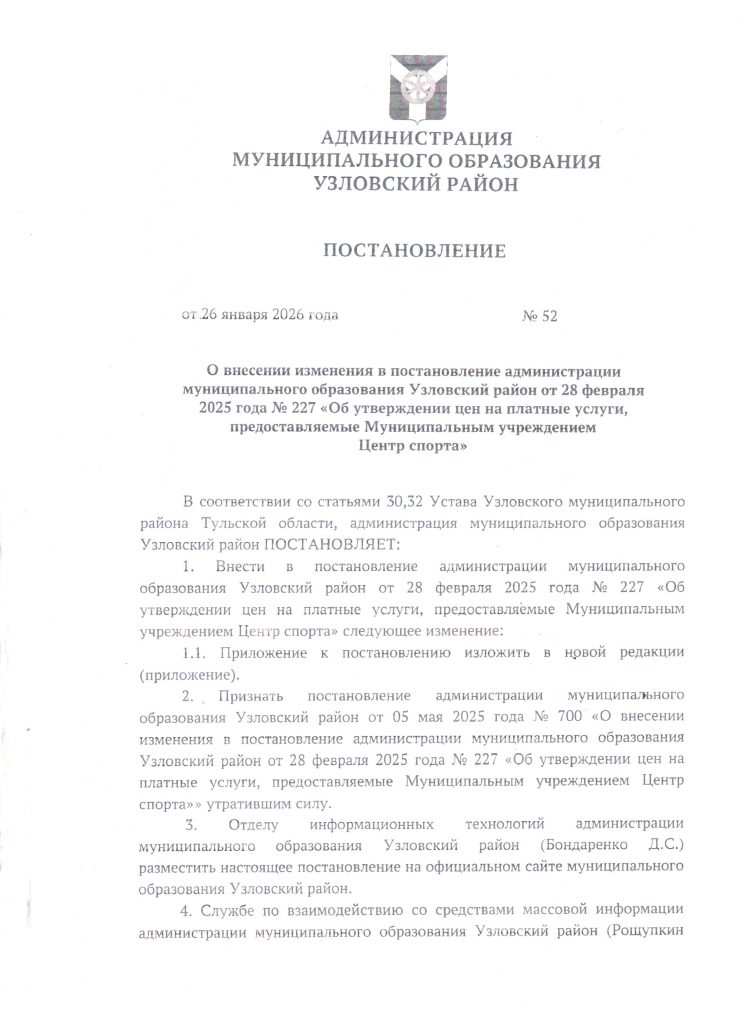 ПОСТАНОВЛЕНИЕ от 26 января 2026 года №52