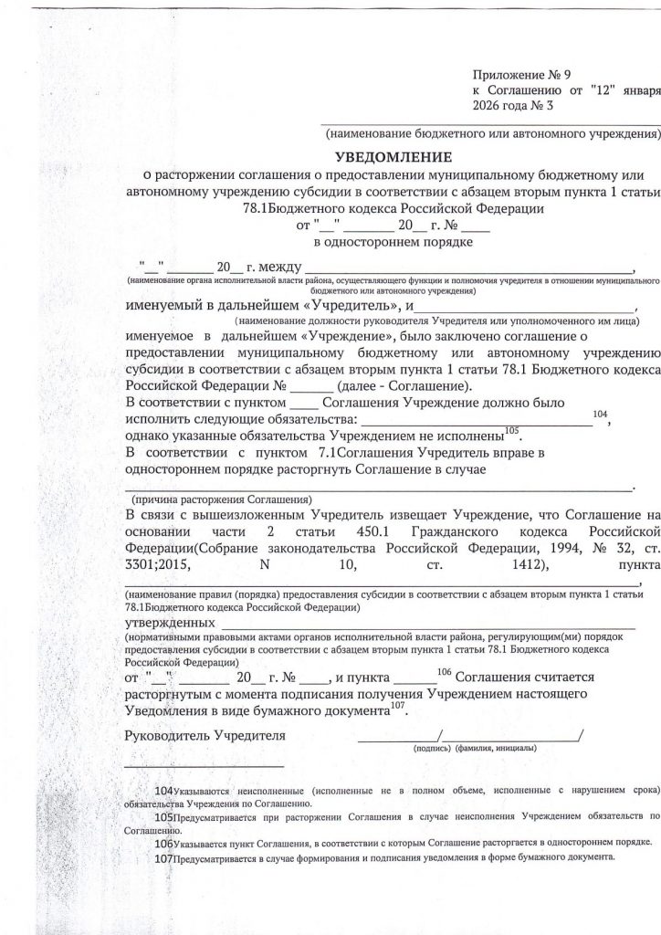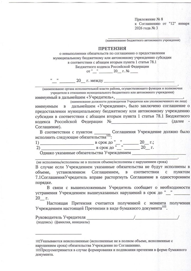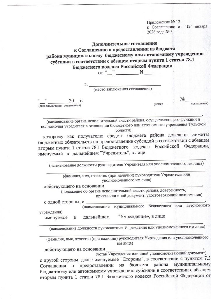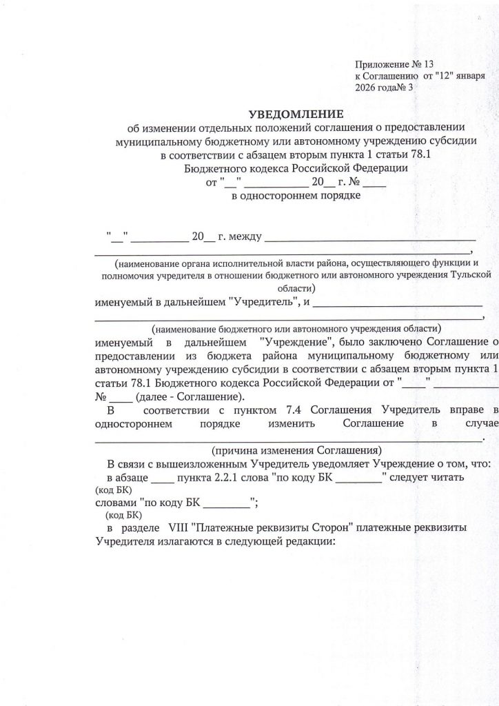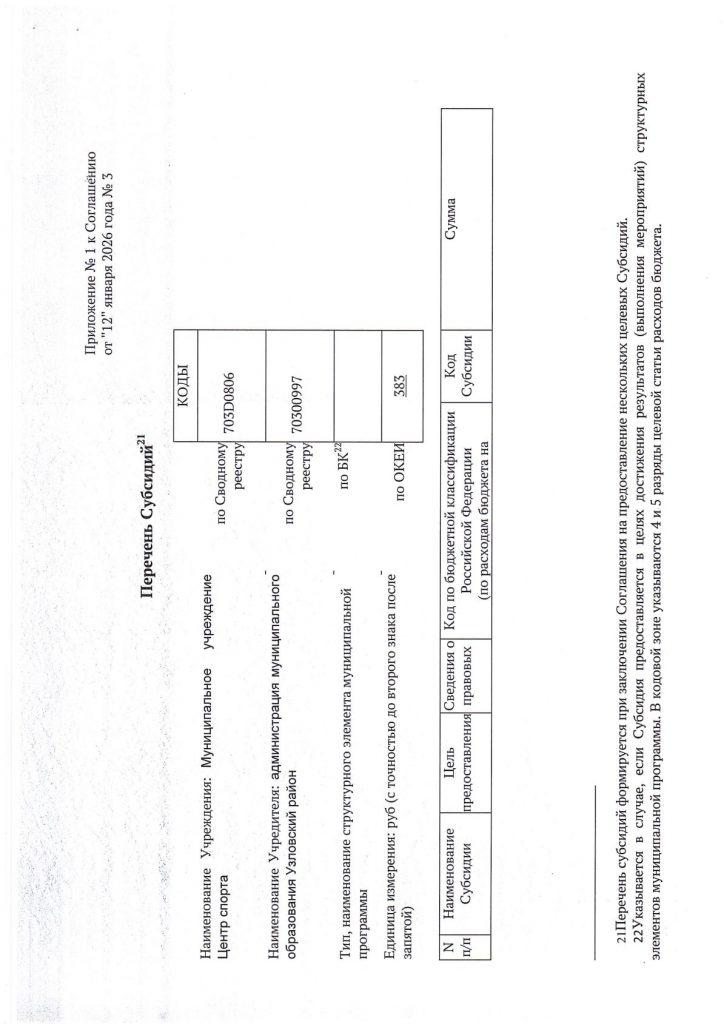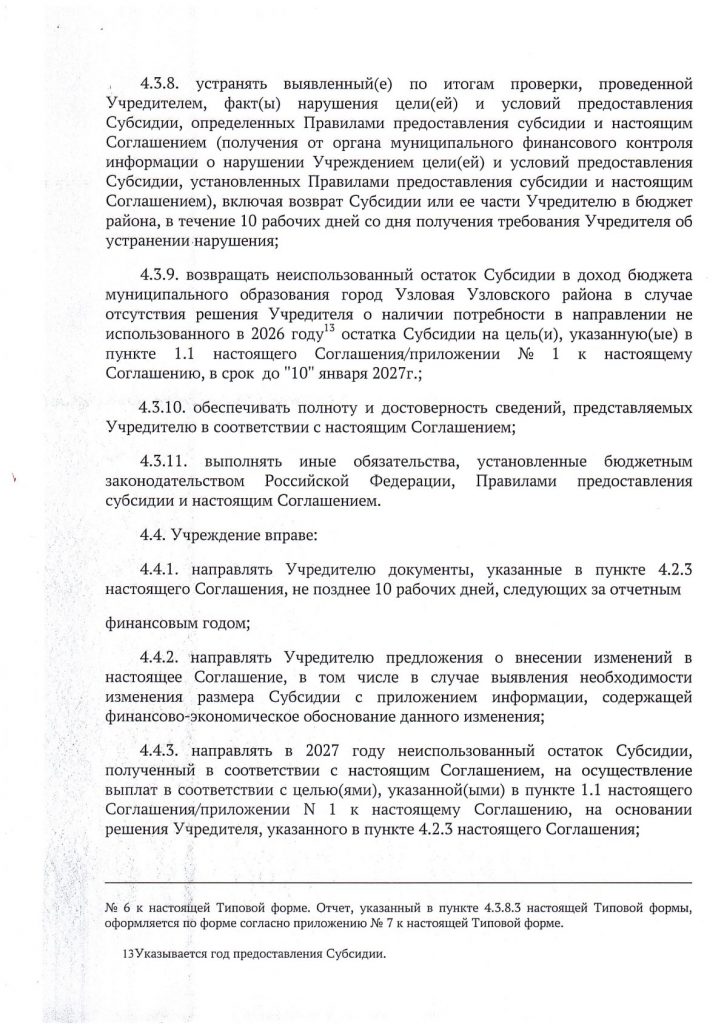 Соглашение о предоставлении из бюджета муниципального образования г. Узловая Узловского района муниципальному бюджетному или автономному учреждению субсидии в соответствии с абзацем вторым пункта 1статьи 78.1 Бюджетного кодекса Российской Федерации